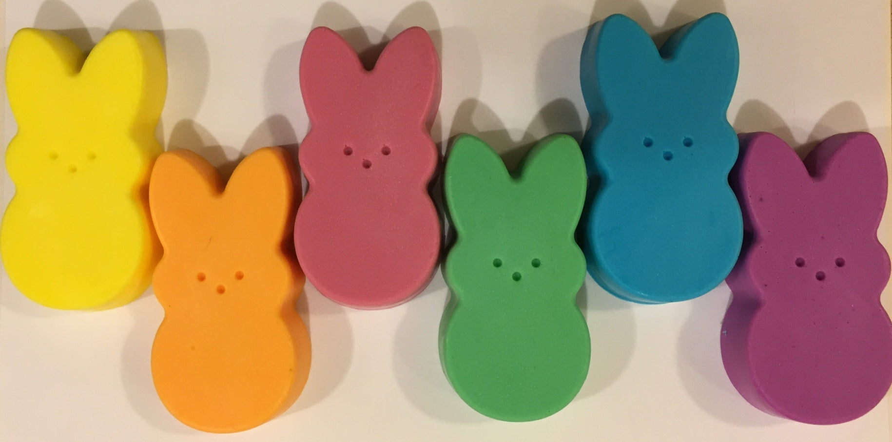 Our unique handcrafted peep soaps are fun for all your favorite peeps. Each set includes six chicks or six bunny soaps scented delicious marshmallow just like the real candy ones.